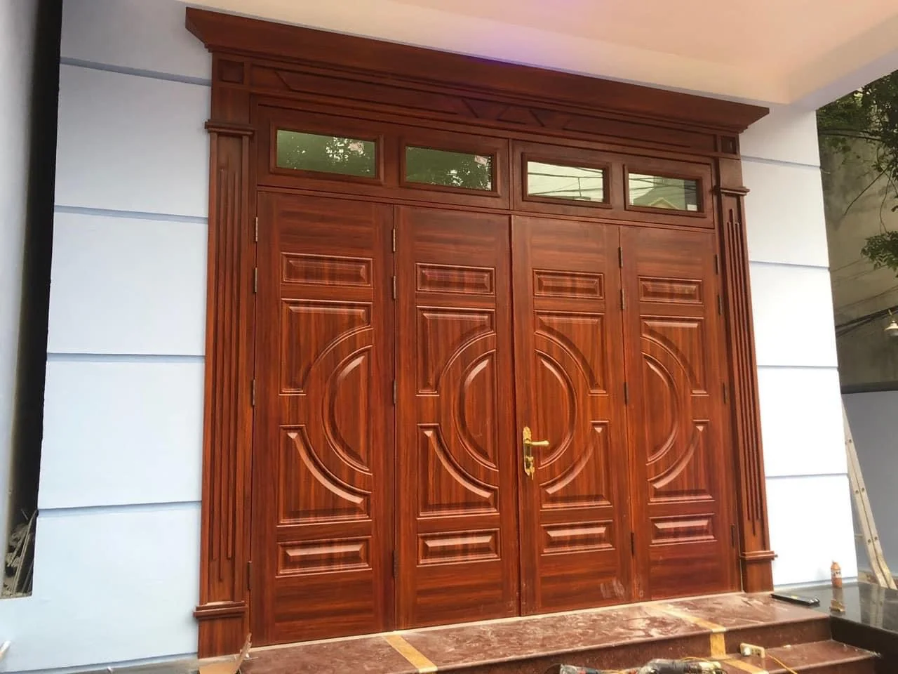 Cửa chính: đây là vị trí mặt tiền nên dùng cửa 4 cánh lệch hay 4 cánh đều sẽ tạo sự sang trọng, bề thế cho ngôi nhà. Ngoài ra cửa chắc chắn kết hợp được với nhiều loại khóa sẽ đảm bảo an toàn cho gia đình.