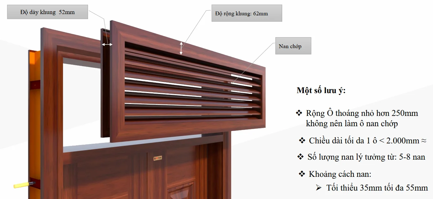 - Phần cánh: Phần cánh của cửa được làm từ thép mạ điện không gỉ có độ dày 0,7 mm – 10mm phủ film vân gỗ, dập lõm các biên dạng cơ bản.