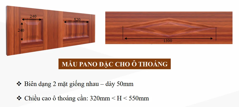 - Pano (huỳnh, họa tiết): Được gia công trên máng ép thủy lực 3000 tấn tạo trang trí cho cửa và tạo vân cứng cho cửa, dập pano tạo hình theo mẫu thiết kế